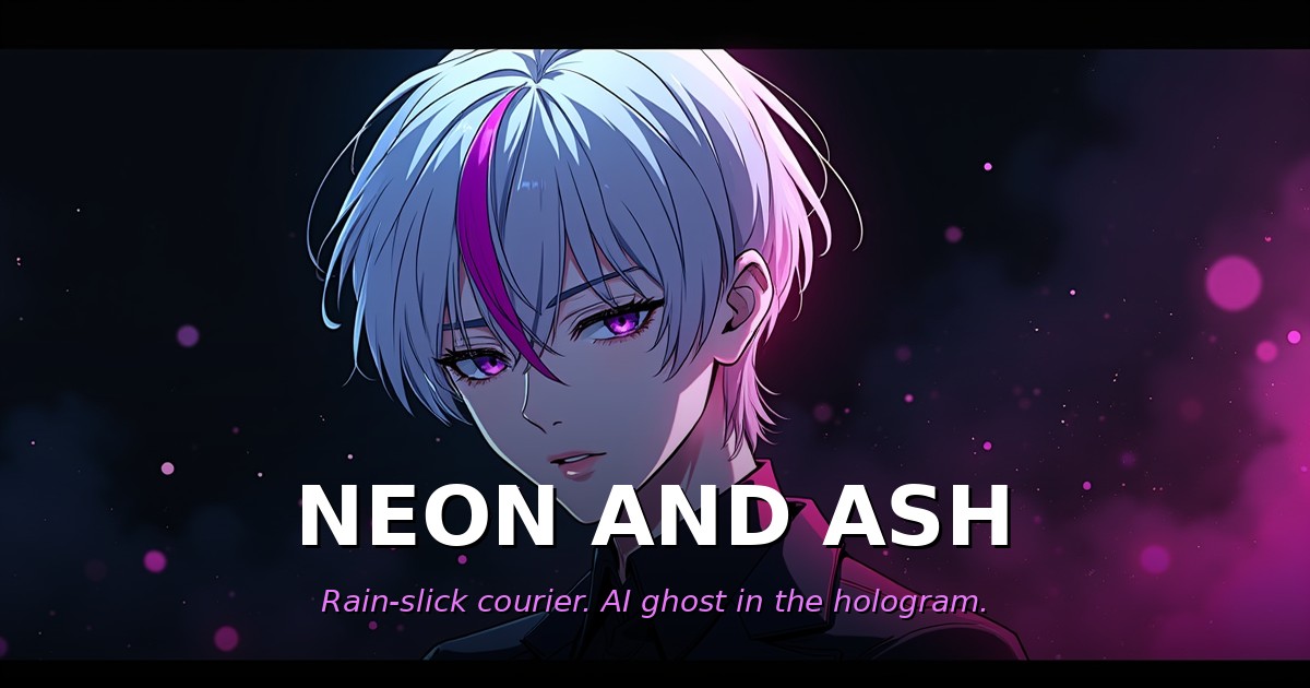 Rain-slick courier. AI ghost in the hologram. Three chapters. Shareable.